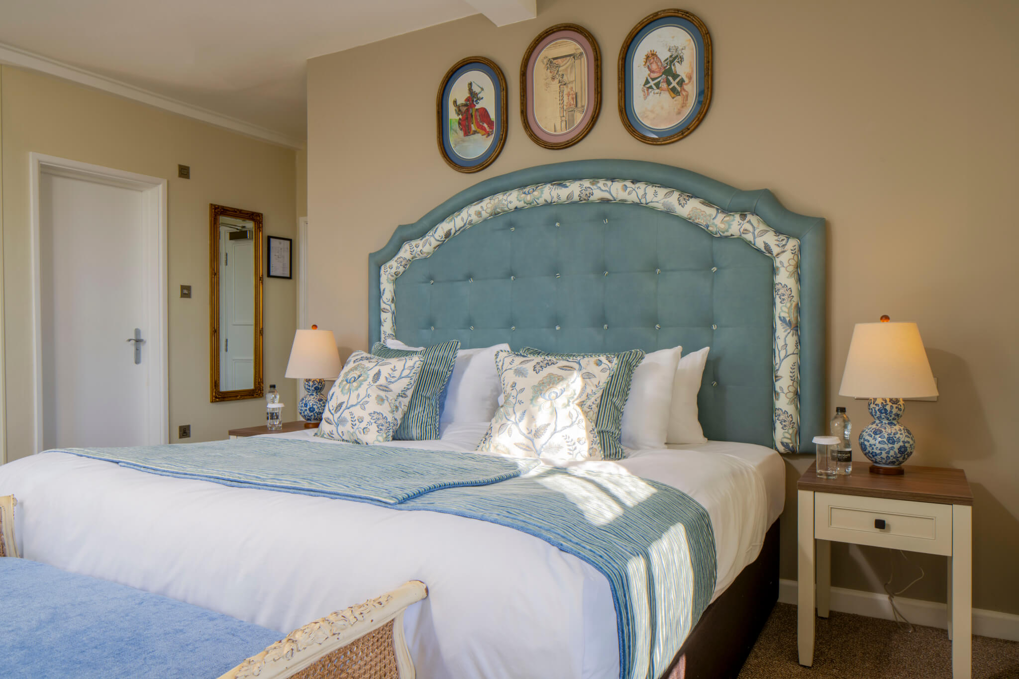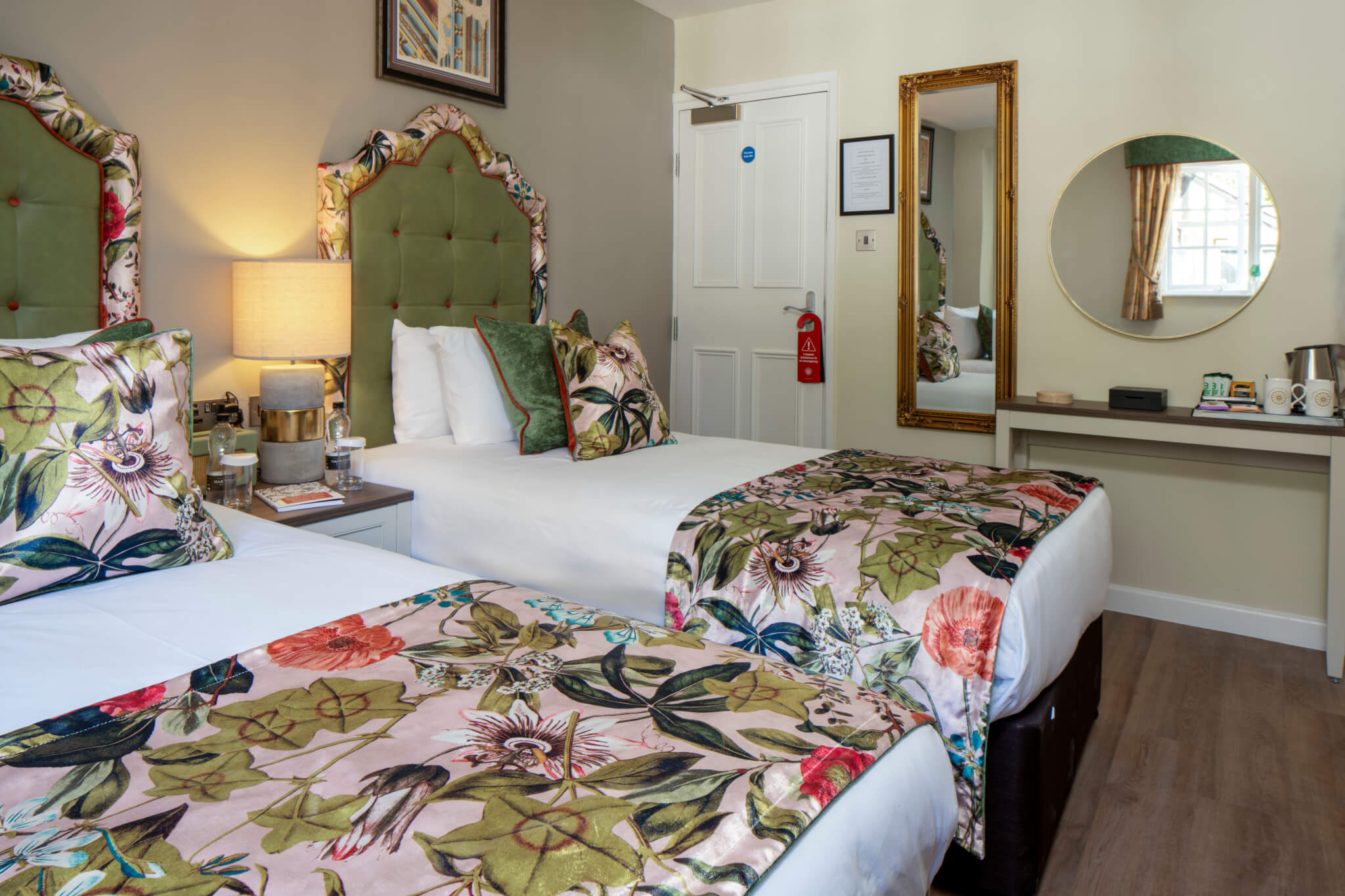 Premium Rooms offer tranquility with premium linens, soft pillows and comfortable mattresses. All rooms offer high speed wifi, H2K of Harrogate botanicals, hairdryer, smart TV, Roberts radio, premium teas and coffee in room, premium biscuits and British spring water